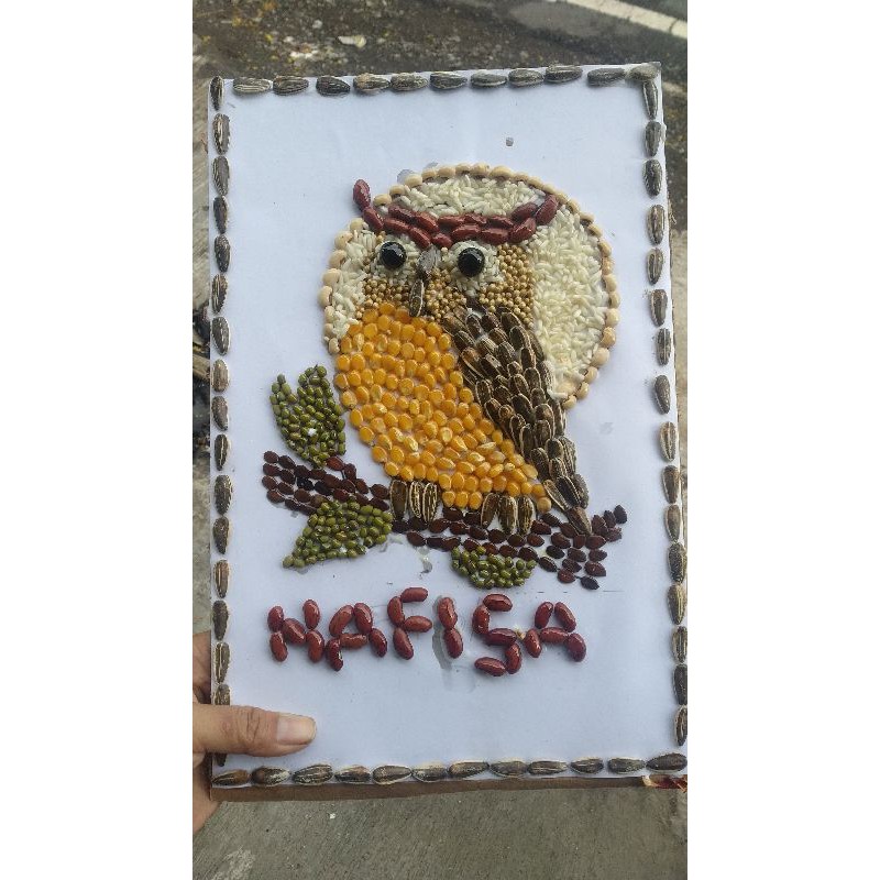 11. Gambar Kolase Burung Hantu Dari Biji Bijian
