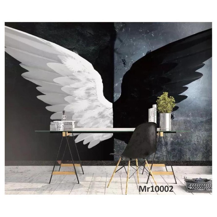 29. Jual Wallpaper Photowall Mural Dinding Motif Sayap Hitam Putih 3D Modern Indonesia|Shopee Indonesia