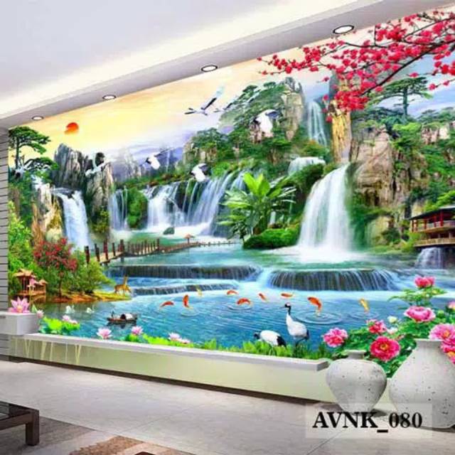46. Jual Wallpaper 3D Wallpaper Custom Wallpaper 3D Pemandangan Alam Air Terjun - Banner Indonesia|Shopee Indonesia